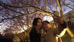 Melihat bunga sakura pada malam hari rupanya memiliki keindahannya sendiri. Β