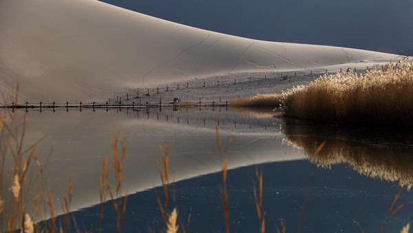 China - Danau Bulan Sabit jadi oasis di tengah Gurun Gobi, China. Bentuknya benar-benar mirip bulan sabit. Hebatnya lagi, umur danau ini 2.000 tahun!
