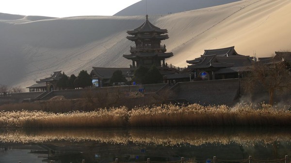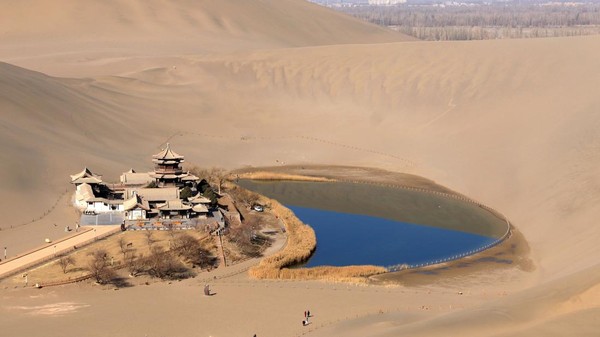 Dunhuang berada di Provinsi Gansu, China. Daya tarik dari kota ini adalah Gurun Gobi yang luas dan traveler bisa jelajahi dengan mobil jeep atau menunggangi unta. Di tengah gurunnya tersebutlah berada Yueyaquan yang disebut masyarakat setempat, yang berarti Danau Bulan Sabit.