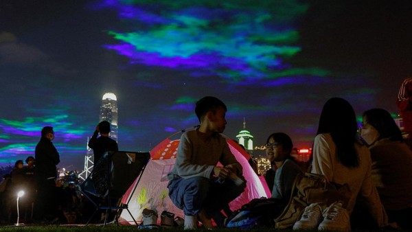 Hong Kong - Langit Hong Kong terlihat memancarkan aurora borealis atau northern light yang merupakan fenomena alam yang hanya bisa dilihat di kutub. Kok bisa di Hong Kong?