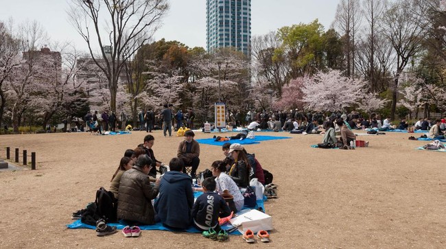 Potret Warga Jepang Asyik Piknik di Bawah Pohon Sakura yang Mekar