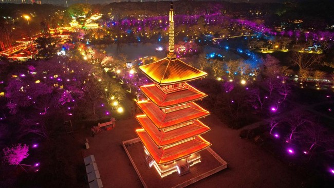 Sensasi Tur Malam di Taman Bunga Sakura Wuhan