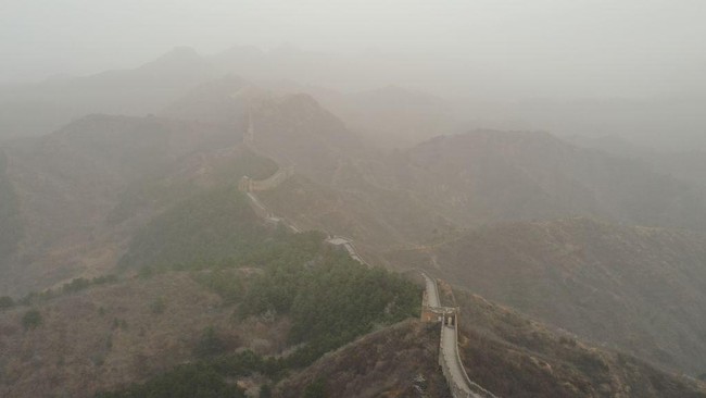China - Badai pasir yang menghantam China mulai menyelimuti kawasan Tembok Besar China. Berikut foto-foto terkininya.