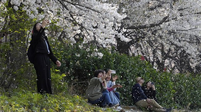 Korea Selatan - Saat musim semi tiba, bunga sakura akan bermekaran di seluruh penjuru Korea Selatan. Warga dan turis pun menyerbu taman untuk menikmati pemandangan indah itu.