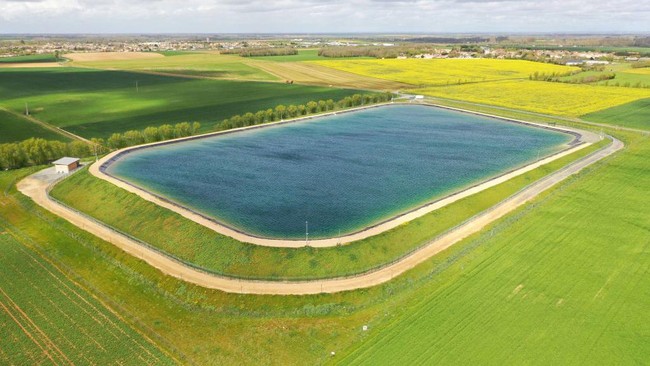 Prancis - Sebuah kolam raksasa terlihat sangat indah dari lensa drone di kawasan Mauze-sur-le-Mignon, Prancis. Eits, kolam tersebut hanya kolam irigasi pertanian lho.