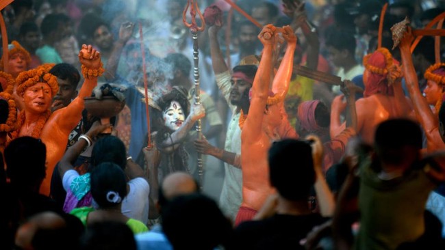 Ritual Unik di Bangladesh, Seluruh Tubuh Umat Hindu Dicat Merah