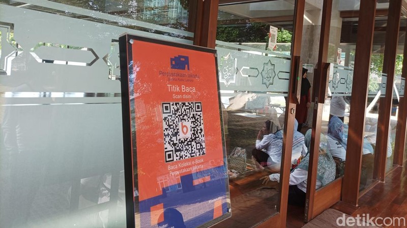 Selepas beribadah di sini, traveler juga dapat menghabiskan waktu dengan membaca e-book. Tersedia titik baca milik Perpustakaan Jakarta, yang dapat traveler scan untuk mendapatkan bacaan gratis. Foto: Weka Kanaka/detikcom
