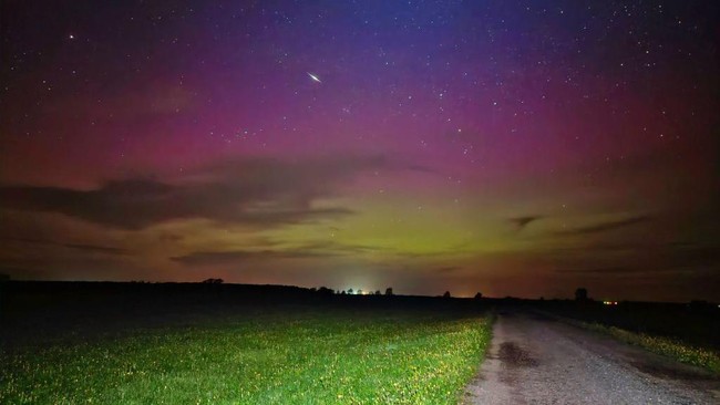 Jerman - Fenomena alam aurora menampakan wuduj indahnya di langit Jerman, tepatnya di kawasan Saxony-Anhalt. Penasaran?