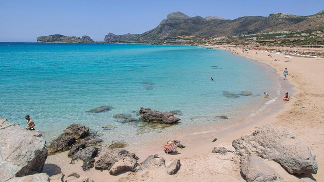 Yunani - Pantai Falassarna di Yunani menjadi salah satu deretan pantai paling top di dunia. Pasir putih dan air jernihnya yang khas menjadi daya tariknya.