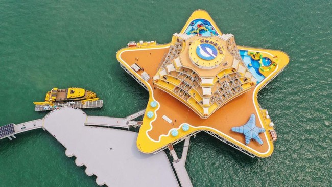 Shandong - China memiliki fasilitas peternakan laut di pantai Yantai, Shandong. Fasilitas unik berbentuk bintang laut raksasa ini menyimpan budidaya ikan hingga rekreasi.
