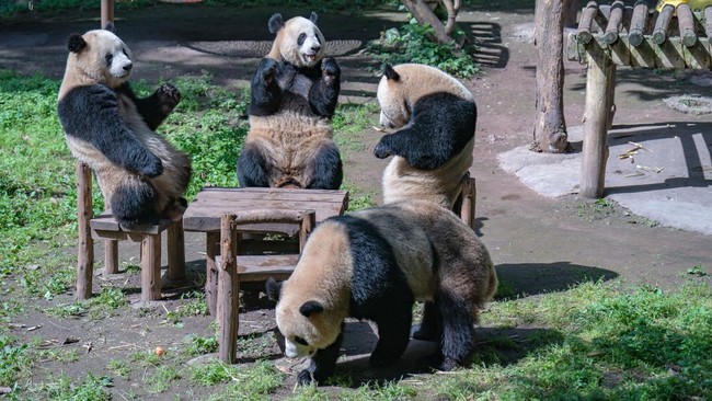 Potret Panda di China Asyik 'Nongkrong' Bareng