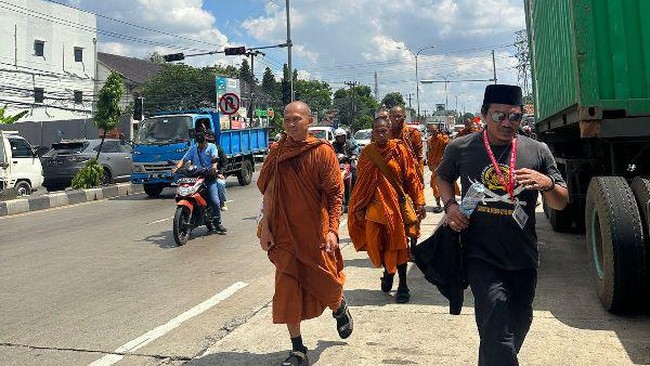 Jakarta - Sebanyak 32 bhante atau biksu menjalankan tradisi Thudong. Mereka berjalan kaki dari Thailand ke Candi Borobudur menjelang Waisak.