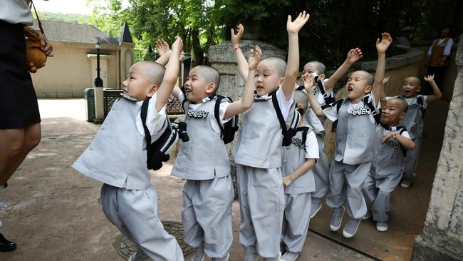 Korea Selatan - Sejumlah biksu cilik menikmati wahana di taman hiburan Everland di Yongin, Korea Selatan. Mereka merupakan anak-anak yang merasakan kehidupan biksu di kuil.