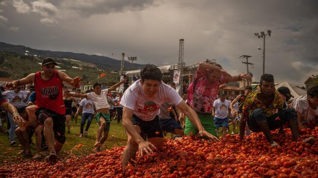 Kolombia - La Tomatina, Festival Perang Tomat di Kolombia. Aksi perang tomat ini digelar selama tiga hari berturut-turut untuk menarik wisatawan.