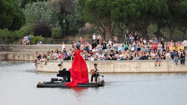 Madrid - Pianis Prancis Violette Prevost menggelar konser musik klasik di atas platform terapung di danau Pradolongo, Madrid, Spanyol. Konser itu sukses menghibur.