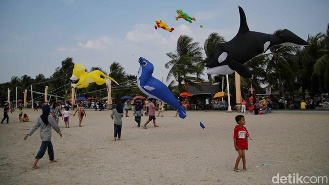 Jakarta - Dalam rangka memeriahkan HUT DKI Jakarta ke-496, Ancol menggelar Festvial Layang-layang di Pantai Lagoon.