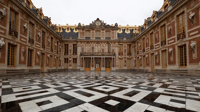 Pemandangan Halaman Marmer di Chateau de Versailles (Istana Versailles) di Versailles, Prancis, 19 Juni 2023. Setelah lima tahun restorasi yang rumit, tempat pribadi Ratu Prancis akan dibuka untuk kelompok kecil pengunjung.