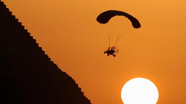 Serunya Terbang di Atas Piramida Giza dengan Paramotor