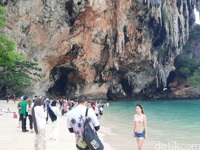 Gua Phranang termasuk destinasi yang jadi favoritnya wisatawan bila berlibur ke Krabi. Bila traveler mengambil paket wisata tur ke empat pulau, pasti akan mampir ke gua tersebut. Foto: Putu Intan/detikcom