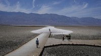 Wisatawan berdatangan ke lanskap gurun yang terkenal di perbatasan California-Nevada ini. Bahkan ketika suhu yang sudah ekstrem diperkirakan akan naik lebih tinggi lagi, berpotensi mencapai rekor tertinggi di tengah gelombang panas besar AS. Death Valley adalah cekungan sempit setinggi 282 kaki (86 meter) yang berada di bawah permukaan laut tetapi terletak di antara pegunungan yang tinggi dan curam. AP/Ty ONeil