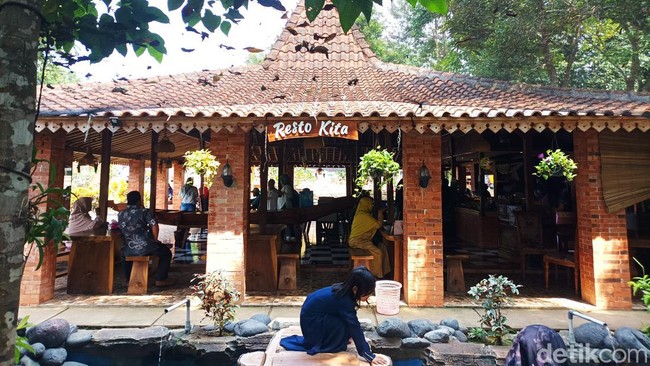 Wisata Kampoeng Kita memadukan wisata pemainan ramah keluarga sekaligus wisata kuliner. Terdapat beberapa spot kuliner di sini, mulai dari yang dijajakan dengan gerobak, area foodcourt, serta area rumah makan. Menunya bertema tradisional, ada ayam goreng, ikan pepes, sayur, oncom, aneka sambal, dan lain sebagainya. Oiya konsepnya prasmanan ya, jadi traveler dapat bebas memilih lauk dan porsi yang sesuai selera. (Weka Kanaka/detikcom)