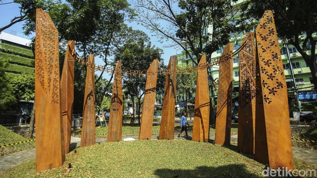 Jakarta - Jadi tuan rumah KTT ASEAN, Jakarta mempercantik taman ASEAN. Selain lebih asri, kini taman itu juga memiliki hiasan 10 pilar.