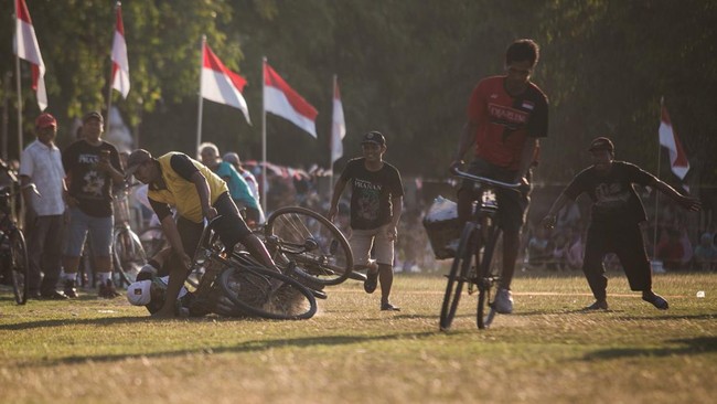 Sukoharjo - Dalam rangka memeriahkan HUT RI warga Desa Pranan, Sukoharjo, menggelar balap sepeda onthel. Lomba ini sekaligus mengenalkan jambu air di Sukoharjo.