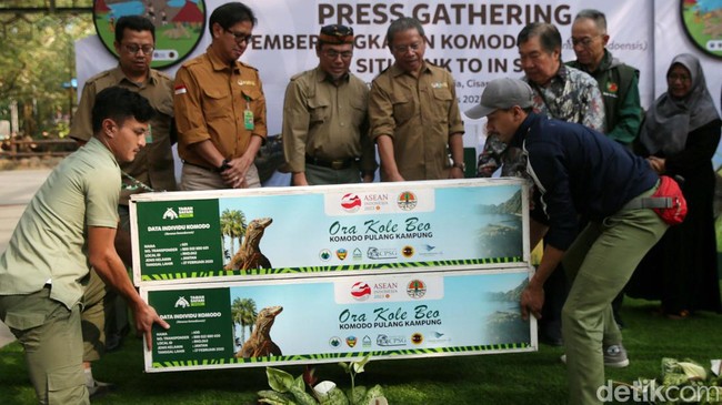 Kabupaten Bogor - Enam ekor komodo hasil pengembangbiakan Taman Safari Indonesia akan dilepasliarkan. 6 ekor komodo itu akan dilepas di Cagar Alam Wae Wuul, Nusa Tenggara Timur.