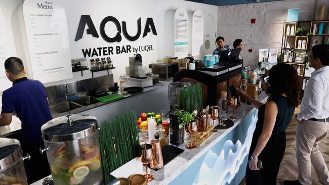 Dubai - Dubai punya kafe unik bernama AQUA Water Bar. Kafe air mineral pertama itu menyuguhkan beragam minuman air mineral yang telah diramu. Yuk lihat.
