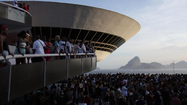 Brasil - Museum Seni Kontemporer atau yang dikenal Museum UFO di Niteroi merayakan hari jadinya yang ke-27. Museum ini mengundang ribuan orang untuk berpesta.
