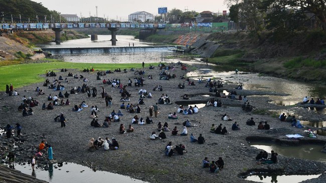 Madiun - Musim kemarau berimbas Sungai Madiun yang mengering membuat kawasan ini menjadi objek wisata altertanif bagi warga.