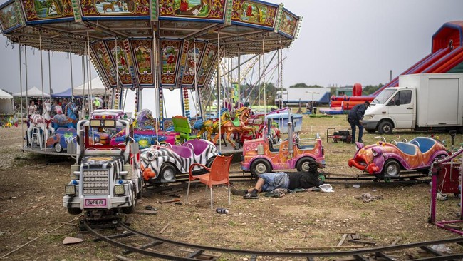 Ini adalah festival kegembiraan yang menawarkan pelarian dari kesulitan sehari-hari bagi sebagian warga termiskin di Rumania. Pameran tradisional musim gugur ini kembali menarik banyak pengunjung di negara Eropa timur tersebut setelah acara tersebut ditangguhkan karena pandemi virus corona pada tahun 2020 dan 2021. AP/Vadim Ghirda