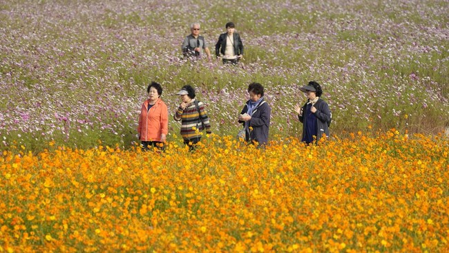 Menikmati Indahnya Ladang Bunga Kenikir yang Bermekaran di Korsel