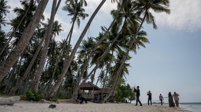 Banggai Kepulauan - Pantai Poganda bisa menjadi pilihan saat berwisata ke Banggai Kepulauan, Sulawesi Tengah. Pasir putih dengan rerimbunan pohon kelapa menjadi daya tarik.