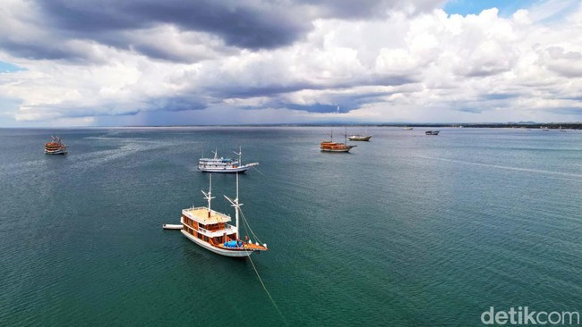 Bulukumba - Selain sebagai salah satu pusat pembuatan kapal pinisi, Tanah Beru di Bulukumba, Sulsel, juga punya pantai yang indah. Kapal-kapal pinisi berjejer di sana.