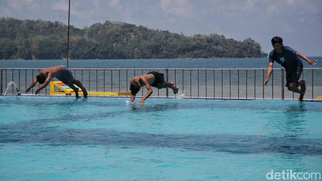 Sulawesi Selatan - Bermain air di kolam renang dengan panorama laut lepas cocok untuk melepas penat. Hal ini bisa dinikmati langsung di Permandian Kolam Alam Limbua Bulukumba.