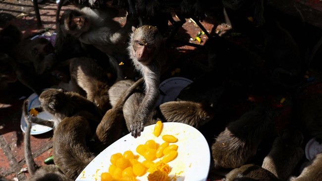 Thailand - Thailand kembali menggelar festival monyet di Provinsi Lopburi, Minggu (26/11/2023). Begini keseruannya.