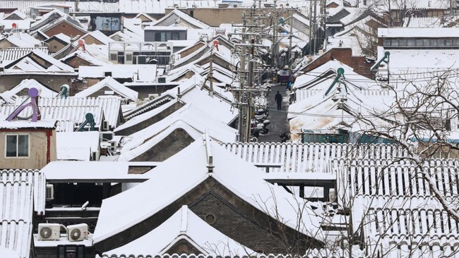 Beijing - Hujan salju turun di Beijing, China, Senin (11/12). Begini potretnya.
