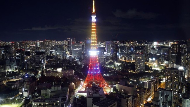 Jepang - Menara Tokyo diterangi warna-warni untuk memperingati pertemuan puncak KTT ASEAN-Jepang. Ikon kota Tokyo ini kerap diterangi saat ada peringatan besar.