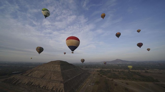 Meksiko - Situs arkeologi Teotihuacan menjadi salah satu tujuan wisata terkenal di Meksiko. Menikmati keindahannya bisa lewat balon udara.