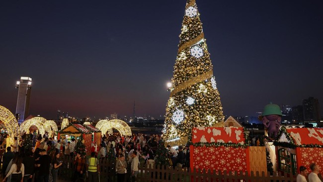 Dubai - Dubai merayakan Natal dengan meriah. Salah satunya dengan memasang pohon Natal tertinggi yang dihiasi ribuan lampu serta ornamen. Yuk lihat.