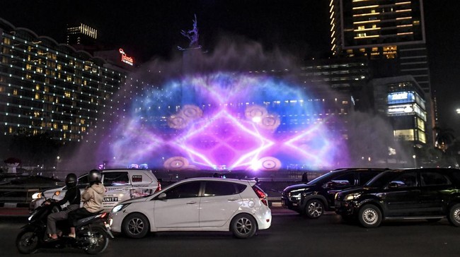 Jakarta - Pemerintah Provinsi DKI Jakarta menggelar perayaan malam tahun baru 2024 di Bundaran HI. Salah satunya akan ada penampilan water screen.