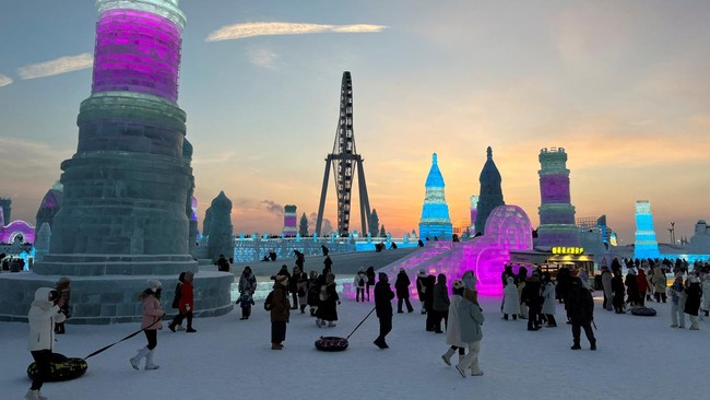 China - Kota Harbin dikenal sebagai kota es yang mengagumkan saat musim dingin tiba. Di awal tahun ini, Harbin mencetak rekor wisatawan setelah pandemi.