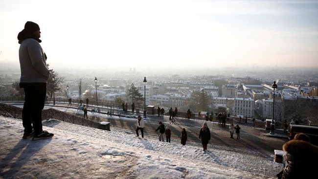 Paris - Paris dikenal sebagai kota romantis dan salah satu destinasi favorit wisatawan untuk menghabiskan liburan. Paris semakin nampak indah kala salju menyelimutinya.
