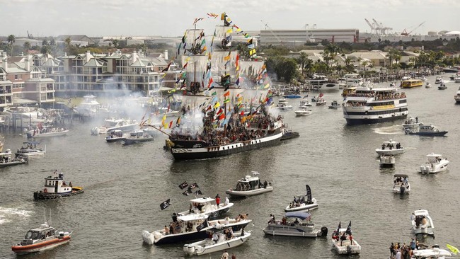 Florida - Festival Bajak Laut Gasparilla kembali digelar. Deretan kapal para perompak sukses menyedot perhatian ratusan ribu orang.