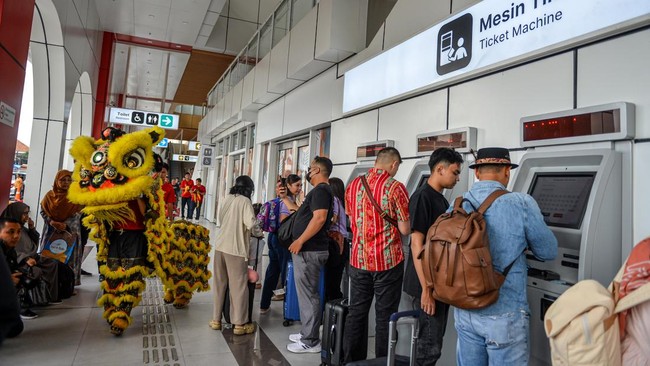 Atraksi Barongsai Hibur Penumpang Whoosh di Stasiun Padalarang