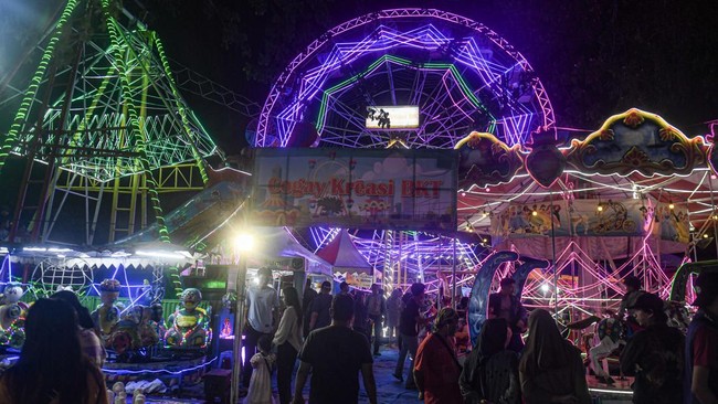 Jakarta - Pasar malam bisa menjadi hiburan alternatif bagi warga yang tidak mudik. Salah satunya di kawasan Banjir Kanal Timur, Jakarta. Yuk lihat.