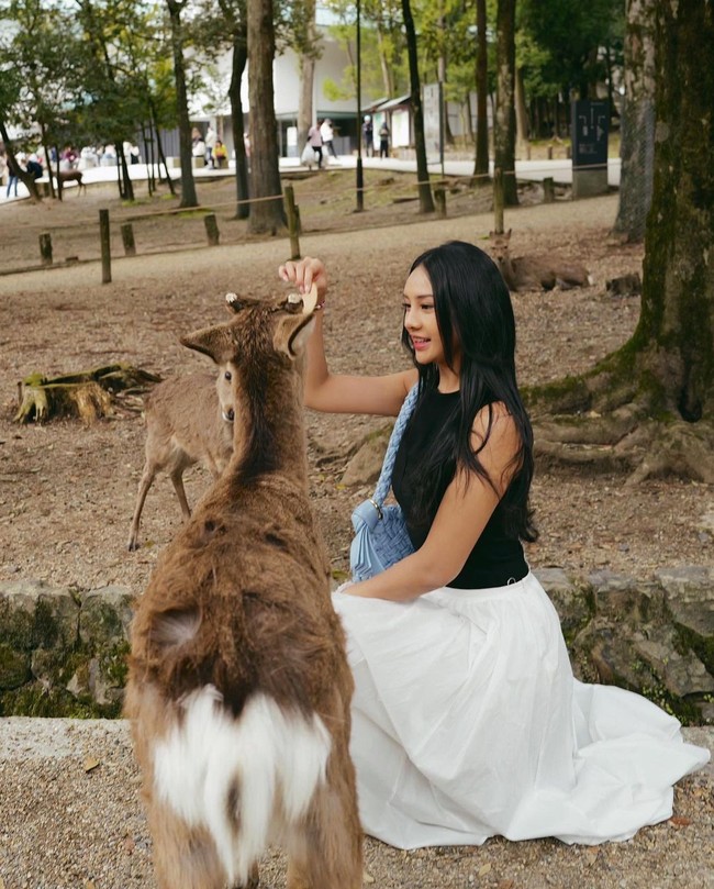 Jakarta - Selebgram Anya Geraldine membagikan momen liburannya di Jepang. Salah satu tempat yang dia kunjungi adalah Nara Park yang iknoik.