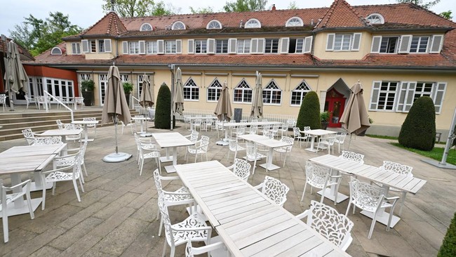 Pemandangan umum beranda hotel tim nasional Swiss "Wald-Hotel" untuk turnamen sepak bola Euro 2024 mendatang di Stuttgart, Jerman.