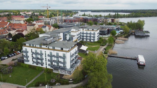 Pemandangan drone menunjukkan hotel Resort Mark Brandenburg di Danau Ruppiner See, tempat tim sepak bola nasional Kroasia akan menginap untuk turnamen sepak bola UEFA Euro 2024 mendatang, di Neuruppin, Jerman.